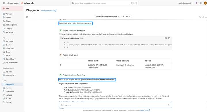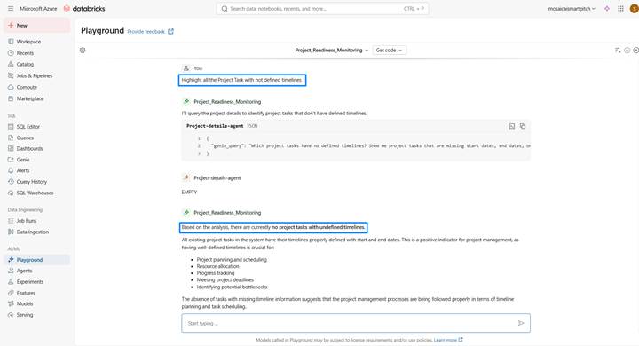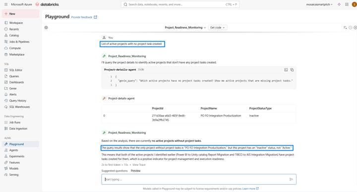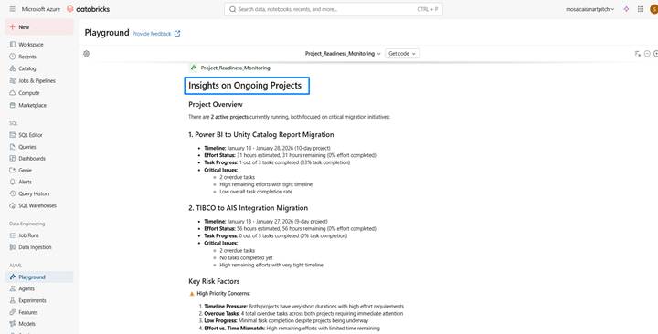 The PMO Assistant built using Agent Bricks operates continuously, monitoring upcoming projects and flagging risks early. This reduces dependency on manual reporting and enables PMOs to focus on proactive delivery management.