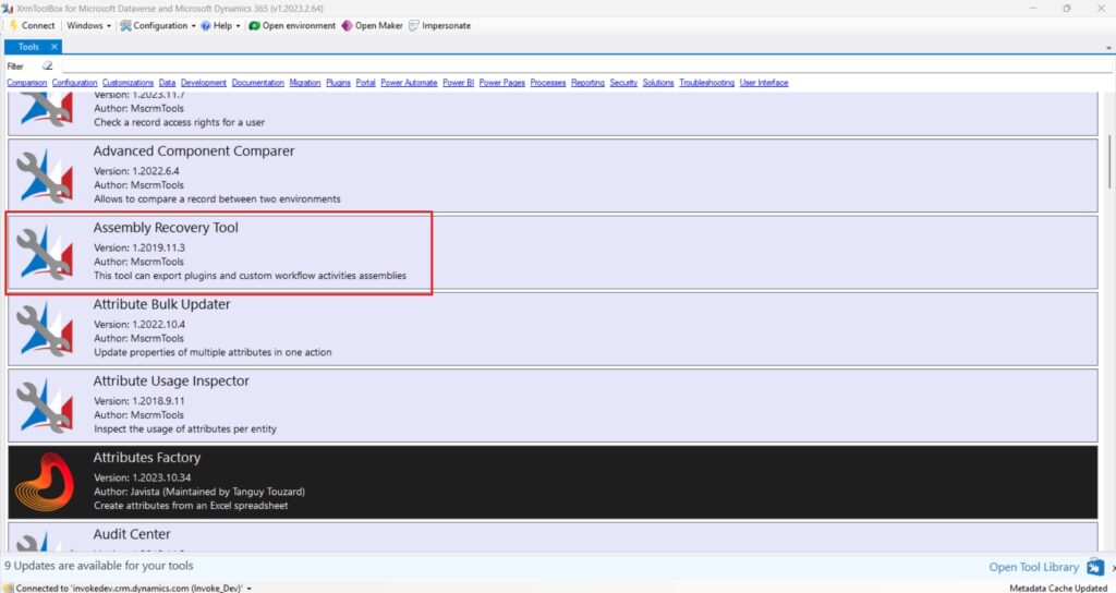 • a. In XrmToolBox, search for Assembly Recovery Tool
