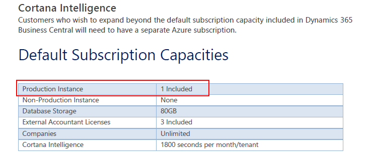 | Business Central October 2019 Licensing Guide – Default Subscription Capacities |