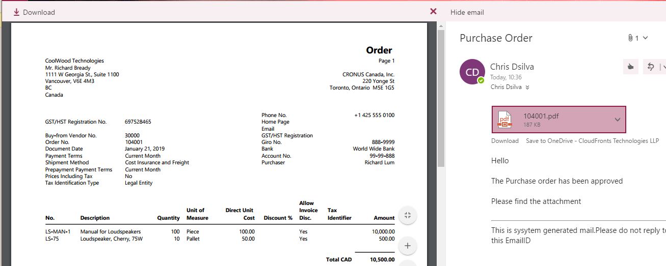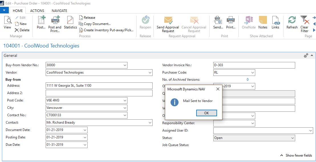 Send Email with attachment to the vendor as a response in Purchase order workflow in NAV 2017