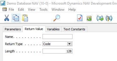 - Now click on the function then click on Locals button placed on the right side. Click on the return value tab and set return type as code and length as 128.