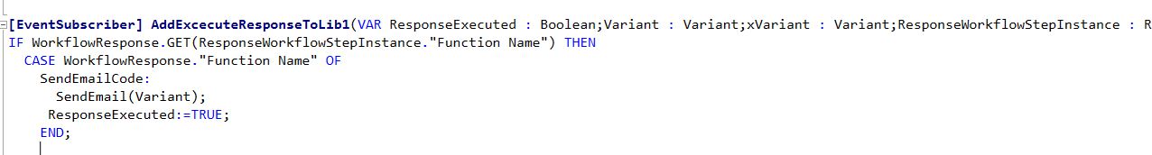 - In the below code, we add the response to workflow library with name SendEmailVendor. This name is a text constant