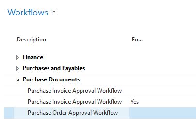 8. In the Dynamics NAV front end , navigate to workflows from the search bar. In the purchase order approval workflow, add the response ‘Send Email To Vendor’ then enable the workflow.