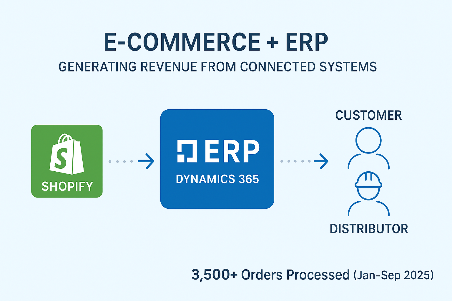 After integrating Shopify with Dynamics 365 F&O, the company has launched a dedicated distributor website where approved distributors can place orders directly on behalf of customers. This portal creates a new revenue stream, strengthens the distribution network, and ensures orders flow into F&O with the same automation, inventory sync, and reporting as direct sales. By extending digital integration to distributors, the company is simplifying order-taking while expanding its business model for global growth.