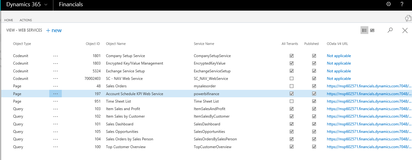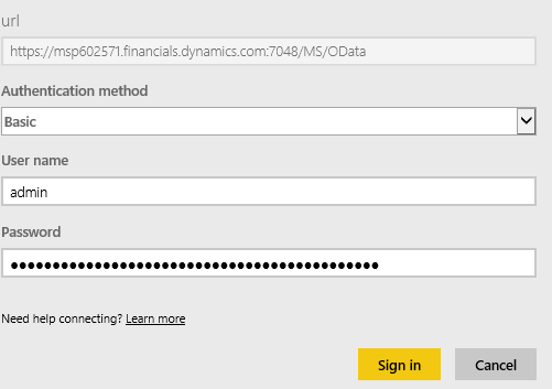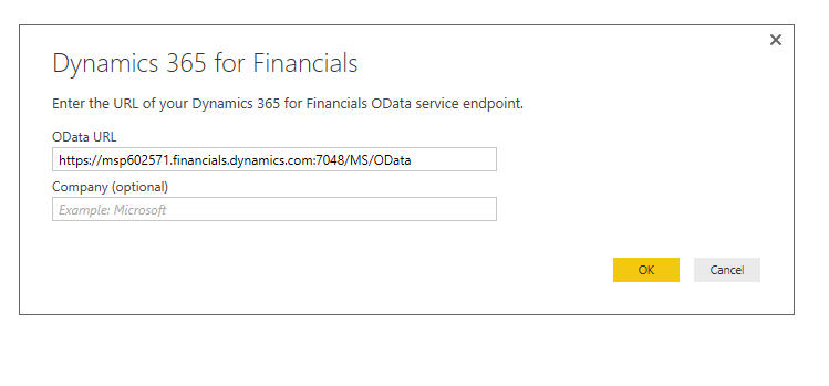 - When Promoted, enter your Microsoft Dynamics Financial OData URL