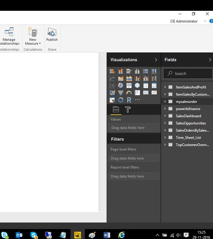 So, after connecting to the financial ODATA you will get all the tables loaded in to powerbi desktop tools and from that we can design a dashboard.