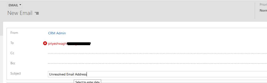 Most new users get stuck with issues saying ‘Email address of the recipient was not resolved’. Like in case you want to send out an email from D365 but you don’t have the same saved in the system as a Contact/Lead or any other record.