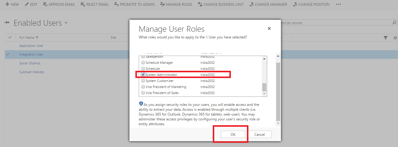 Now remove D365 license assigned to integration userIf you observed, you can see integration user as “Enabled User” in the Dynamics 365 Environment after removing D365 license.