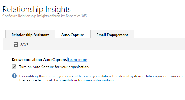 1. Auto Capture is a sub-feature of Relationship Insights. Relationship Insights is a preview feature in December 2016 update for MS Dynamics 365 Online.