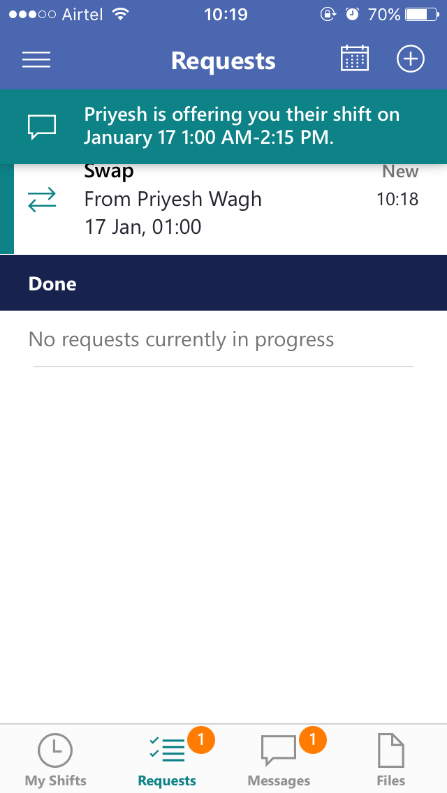 Employees can also offer to swap the shift i.e. to get the shift exchanged by some other co-worker. Workers can decline the request and approve the request.