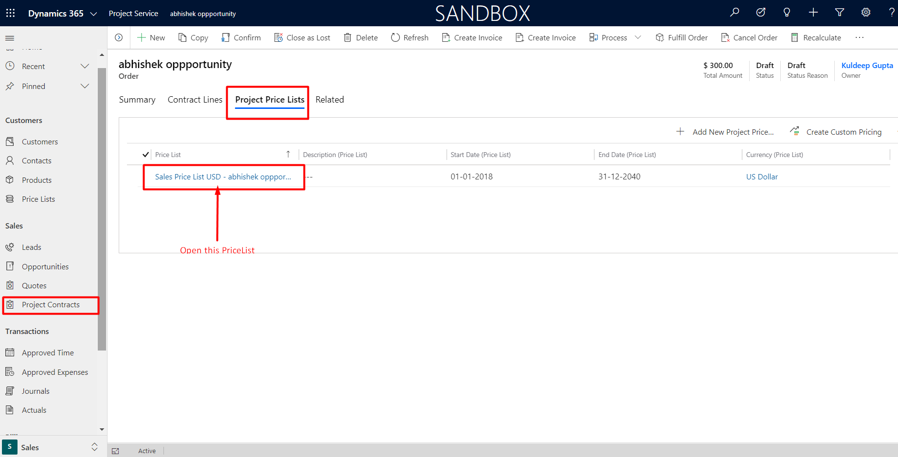 How do we Identify whether it is a Custom Price List is that, with the name of the Pricelist i.e. Sales Price List USD, there is the name of the opportunity and the Timestamp appended to it. You will see it in the screenshot below.