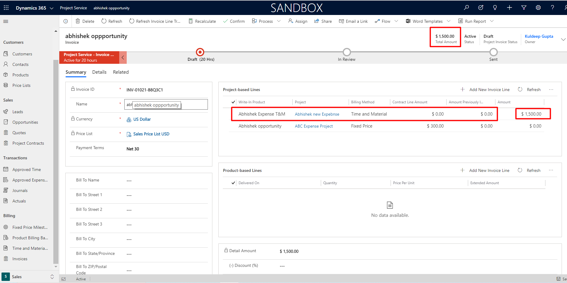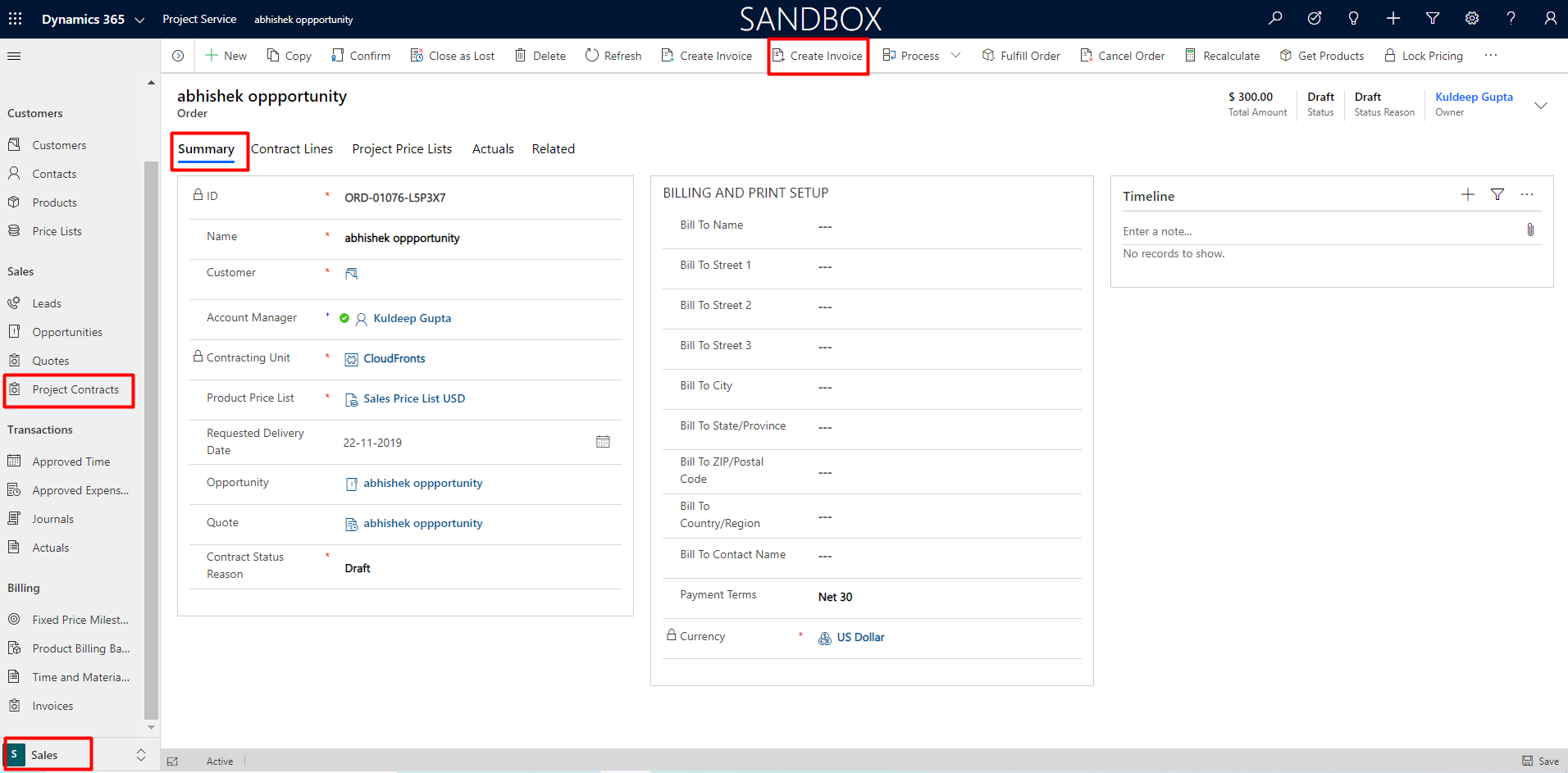 4. Last step is to Create Invoice and see if the Expense gets shown up in the Invoice. For the same traverse to Project Contract and Open the specific project contract.