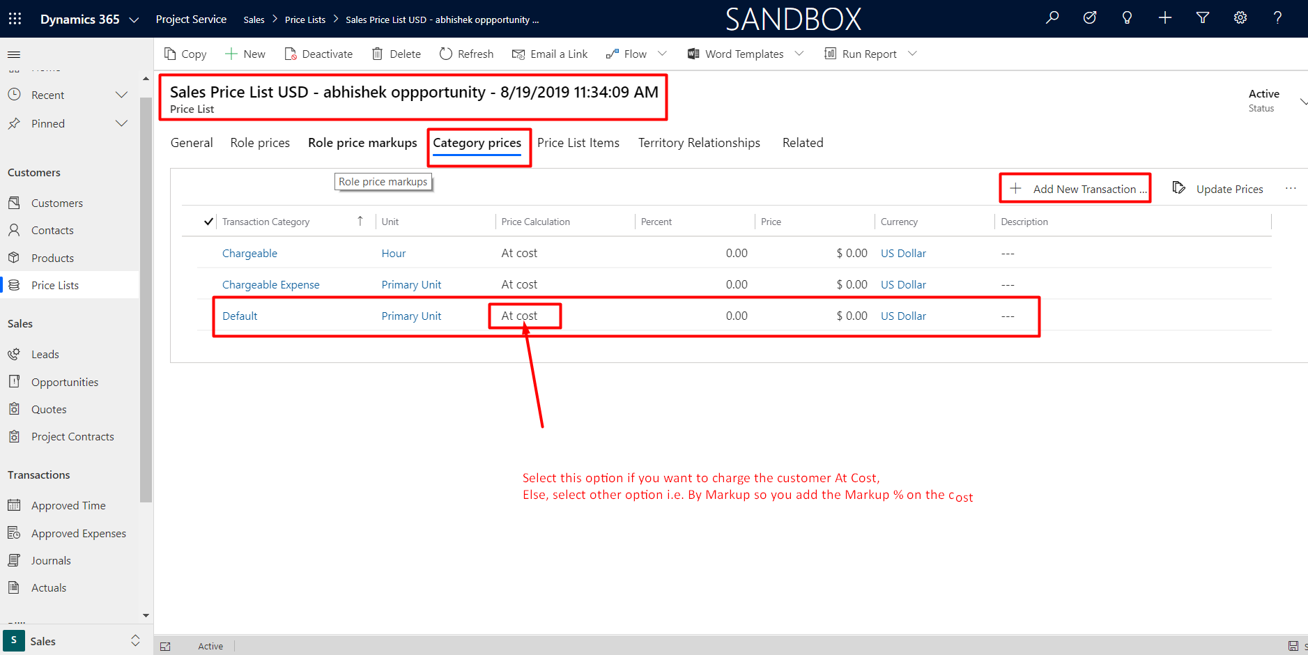 One of my clients decided to use Expense module in PSA and to his surprise he could see the amount value to be 0 in the Actuals. But, at the same time the Cost line had values in it. Upon researching and digging into all the configurations I was tired and couldn’t conclude. Finally, one configuration that made it work was to add the Transaction Category in the Sales Price List and make it Chargeable at Cost.