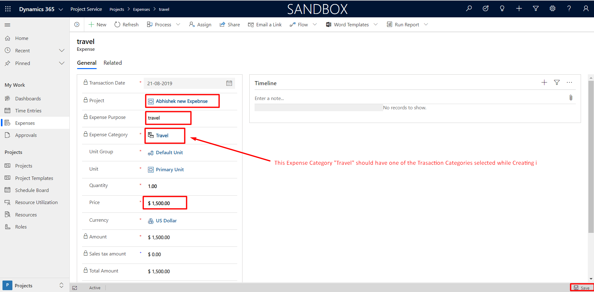 If you observe in the above image, there is a Transaction Category associated with the expense category and that is the one that should be present in the PriceList that we discussed initially in the above part of this blog.
