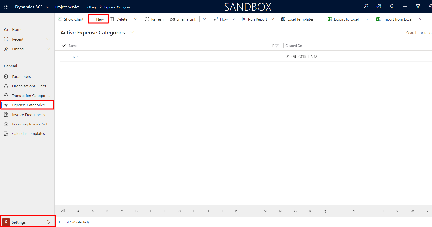 - Navigate to Settings Area and Click on Expense Categories and then click on New.