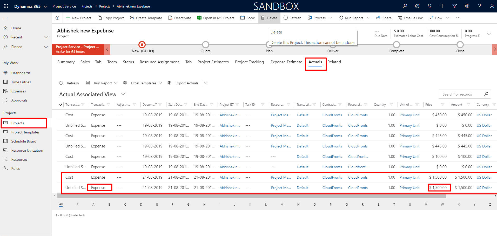 - Project Manager approves it and as soon as the Project Manager approves it, it gets converted to Actuals as shown below.