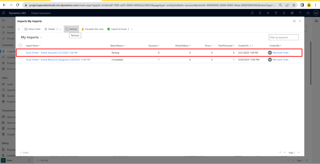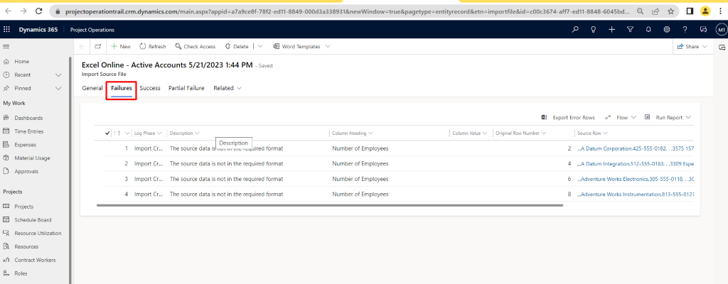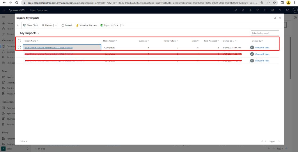 Step 8: Once the import job is completed you will see how many records were created successfully and how many failed or partially failed. You can open the import job and check failed entries, correct the entries and re-import