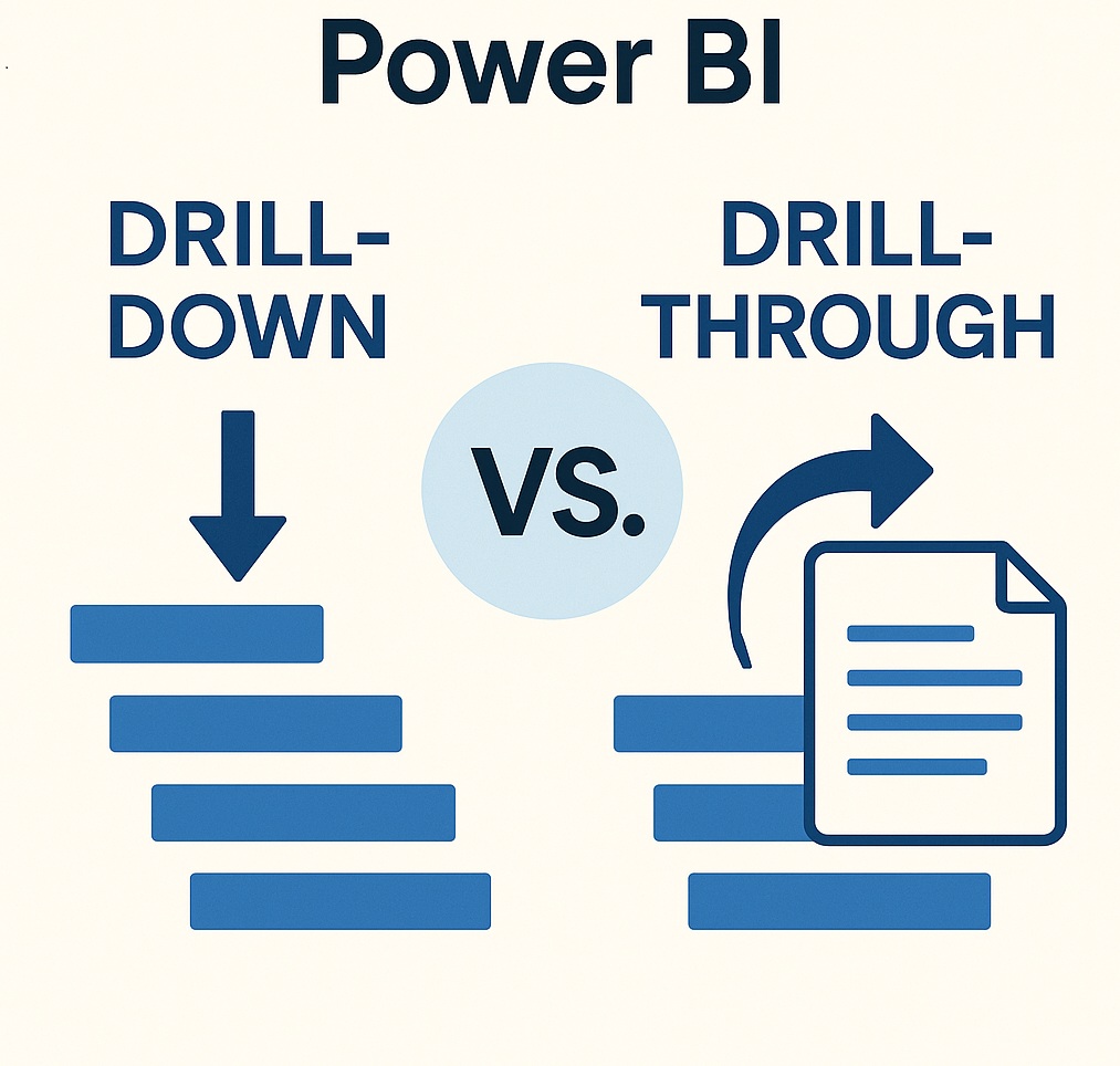 If you’ve been building reports in Power BI for a while, you’ve probably come across two features that sound similar but behave very differently: Drill-Through and Drill-Down. Many new users—even experienced ones, often get confused about when to use each option.