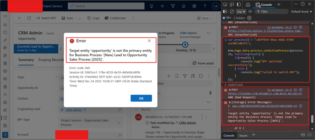 This blog walks through a real-world challenge I encountered while working with a Houston-based technology consulting and cybersecurity services firm. The firm specializes in modern digital transformation and enterprise security solutions. I explore issues with Lead → Opportunity Business Process Flow (BPF) switching, explain why the out-of-the-box behavior falls short, and detail how I designed a robust client-side and server-side solution to safely and reliably switch BPFs-even after a Lead has already been qualified.