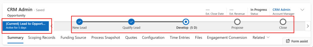 - 1] A Business Process Flow is always anchored to a primary entity (Lead, Opportunity, Account, etc.).