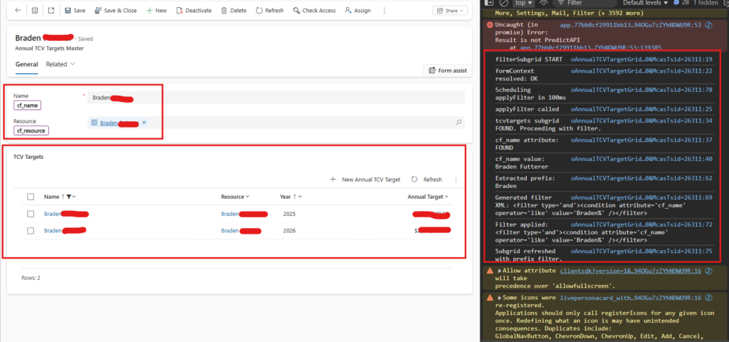 To conclude, filtering subgrids dynamically in Dynamics 365 is not something the platform supports out-of-the-box- especially when the entities are unrelated or when the filter criteria doesn’t exist in the subgrid’s original view. However, with a small amount of JavaScript and the setFilterXml() API, you gain complete control over what data appears inside a sub grid, purely based on the context passed from the main form.