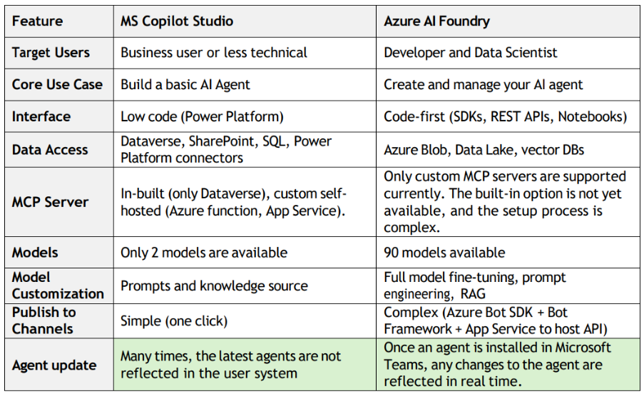 From these, we came to know the following differences between agent development in AI Foundry & DataBricks Mosaic AI –